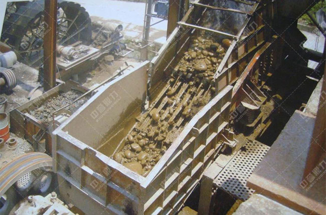 加工原料經(jīng)振動送料機(jī)定期、定向?qū)⒓庸ぴ纤腿雙e鄂破機(jī)進(jìn)行粗碎,送料的此時,預(yù)先篩選分級出加工原料中夾雜的異物,防止其進(jìn)入碎石機(jī)的機(jī)腔,毀壞機(jī)器,從pe鄂破機(jī)出來后,振動篩篩選出破碎合格的部分送入二級破石機(jī)械(反擊礦山碎石機(jī)、圓錐碎石機(jī))進(jìn)行二段破碎,破碎至更小的顆粒,便于進(jìn)行制砂處置,石子打砂機(jī)對二段破碎合格的加工原料進(jìn)行沖擊制砂,根據(jù)成品要求,將性能調(diào)改至滿意數(shù)據(jù),生產(chǎn)出期望粒度的成品砂石,加工原料從石子打砂機(jī)出來,會攜帶有揚(yáng)塵,砂石洗選機(jī)械可以將包覆在砂石表面的揚(yáng)塵,和中間夾雜的異物清洗干凈,后獲得干凈的河道石成品砂石。