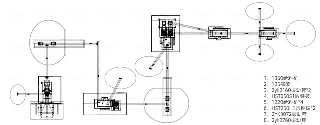 配置方案HD125顎式破碎機+GYS500圓錐破碎機+2465振動篩+2165振動篩+相關(guān)配套SC315S單缸圓錐破碎機+HP300多缸圓錐破+PF-1520反擊破+3YK2866振動篩+2YK2866振動篩+配套臥式旋回破+中碎圓錐+沖擊式破碎機