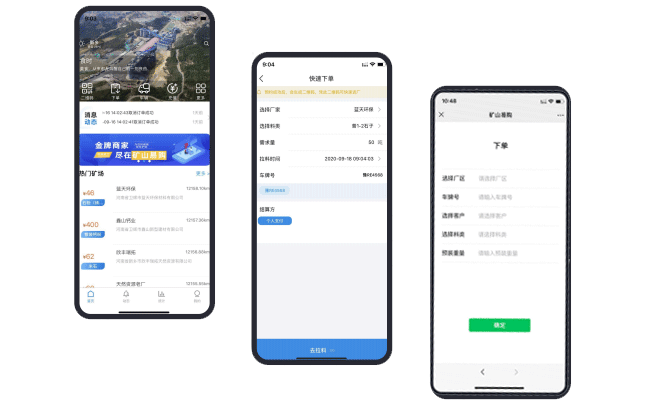 可通過微信公眾號、小程序、礦山易購APP等下單,登記車輛到廠物流計(jì)劃,由主方審核通過后石料銷售系統(tǒng)發(fā)送“短信”邀請司機(jī)到廠拉料指令。