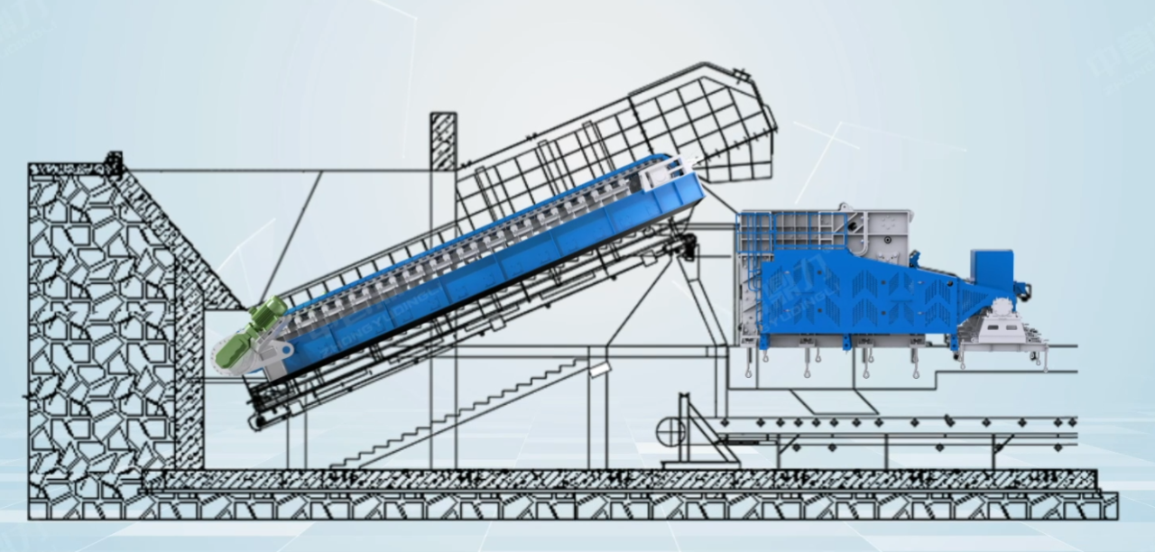 中譽鼎力DLHGC臥式旋回破碎機適用于較大產能且工況受限的現(xiàn)場破碎作業(yè)使用,尤其在地下破碎作業(yè)或安裝高度受限的露天礦場使用優(yōu)勢更佳。通過裝備機械結構方案設計,減小了設備自身高度及生產線進料平臺高度,從之前傳統(tǒng)旋回破的生產線建設入料端高度32m降低至17m,如配合板式喂料機整體土建高度可控制于10米以內。該設備拆裝維護高度低,可適用于具有高度限制的礦洞現(xiàn)場使用。