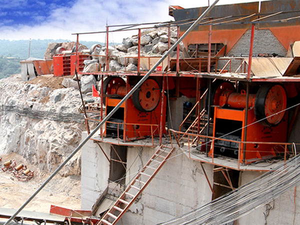 粗碎機(jī)械,原始石頭通過料堆,由振動(dòng)送料機(jī)均勻喂料,運(yùn)輸?shù)絧e鄂破機(jī)進(jìn)行粗碎,通過粗碎后的石頭和由振動(dòng)送料機(jī)篩選分級的細(xì)小石頭由帶式輸送機(jī)一起運(yùn)輸?shù)街修D(zhuǎn)料堆。